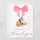Diga aos amigos e à família que estão presentes no seu chá de fraldas com este tema de arco rosa, obrigado cartas. O design apresenta sua foto favorita de bebê, um cabeçalho de "obrigado você" em uma caligrafia elegante, e o nome e a data de nascimento de seu bebê em caracteres elegantes. A foto é cercada por uma delicada estrutura quadrada e coroada por um arco de aquarela rosa giro, dando-lhe um visual de uma caixa de presentes! Simples e imaginativo! O inverso apresenta a mensagem do seu obrigado personalizado. Use as ferramentas intuitivas de design, suas fotos favoritas e sua inspiração, e faça com que esse chá de fraldas de fotos elegante e minimalista / cartões de agradecimentos de anúncio de nascimento seja exclusivamente seu!