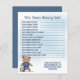 Bonito tema desportivo "Quem conhece melhor as Mamães?" Design de jogo de jogador de futebol Chá de fraldas do Blue Teddy Bear