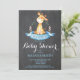 Chá de fraldas Girafa Chamando Cartão Azul e Chalkboard. Chá de fraldas De Meninos Convidam. Flor Floral de Água e Sair.