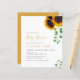 Folhas de eucalipto de cor aquática moderna de verão e girassóis, rapaz ou menina / barato BUDGET neutro em termos de gênero convite para chá de fraldas com um script de tipografia de ouro falso em chic. +++++++++++++++++++++++ LEIA ISSO ANTES DE COMPRAR! Este é um cartão de barato de orçamento impresso em uma folha de papel (cada folha tem um cartão). +++ Para obter a melhor qualidade de preço, nosso conselho é escolher o tipo de papel Semi-Gloss (é espesso o suficiente para ser usado para papelaria) +++ Se você precisar de envelopes, escolha a OPÇÃO ENVELOPE. ++ Verifique duas vezes todas as informações e a ortografia do seu texto porque você receberá exatamente o que você vê - ninguém mais verificará nada antes de imprimir. +++ Esta placa foi projetada para o tamanho de 4,5" x 5,6". Caso você escolha outro tamanho do cartão e o texto saia da página, tudo precisa ser corrigido antes de adicionar o produto ao carrinho. Peça ajuda ao Serviço de Design ao Vivo.