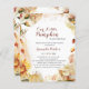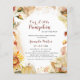 Este convite para o Chá de fraldas de Abóbora de outono apresenta o florescente girassol, laranja rústica e flores cor-de-rosa poeirentas, galhos de floresta, um pouco de abóbora e gotas de ouro. Personalize-o e aproveite-o. Observe que os envelopes NÃO estão incluídos neste design. Se precisar de envelopes, verifique nossa coleção ou adquira-os separadamente do mercado.