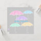 Um convite para chás de fraldas adorável com fundo de cinza e guarda-chuvas coloridos
