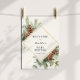 Bem-vindos convidados ao seu chá de fraldas de inverno com este belo poster, com um quadro de ouro rodeado por verde, pinecones e verde de inverno. Adicione o nome do convidado de honra, a data de chá e o texto de boas-vindas personalizado usando os campos fornecidos.
