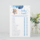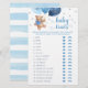 Adquira este cartão editável e desfrute do jogo de traços do bebê do urso de pelúcia azul e prata de alta qualidade para o seu evento! Este é um modelo de cartão, Você pode personalizar o cartão, mudar o texto como quiser! Atividades de chá de fraldas! Adivinha o jogo.