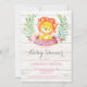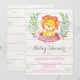 Chá de fraldas de Leão Rustic Girl Lion, Lion Pink e Cartão de Cinza. Chá de fraldas De Garotas Convidam. Flor Floral de Água e Sair. Fundo Da Madeira Rústica.