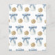 Um Pequeno Biscoito Está A Caminho! Festa de chá de fraldas de Aquarela. Cookies de aquarela com chocolate e leite de garrafa com arco azul.