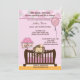 Tem um doce bebê macaco no berçário. Um lindo celular para bebês decorado com uma girafa, macaco, elefante e zebra adornam o berço. Apresenta sombras do tema de cores original (cor-de-rosa/lavanda) do ORCHID. Este convite ao chá de fraldas MonkeyHutDesigns coordena-se com qualquer tema de safari da selva e é excelente de uma RAPARIGA. (Design nº: ISMO-0036 (Macaco Orquídeo)