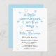 Blue Boy Chá de fraldas Invitation com frase fofa e comum 'um pequeno amor está a caminho'.