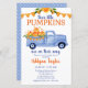 Este adorável orçamento, o convite para Chá de fraldas do Little Pumpkin Triplet Boy, com um caminhão azul-aquarela carregado com bombas de queda, seria perfeito para o seu chá! É fabuloso para celebrar o outono ou o tempo de colheita de meninos. Ele tem um dorso azul macio coordenado com pequenas bolinhas brancas. Tão bonitinho por receber um novo conjunto de tripletos.