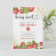 Alguém doce de morango está a caminho! Celebre a chegada do seu pequeno docinho com este convite de chá de fraldas de morango neutro por gênero! Este design apresenta morangos a aquarelas, flores e verde com brilho de ouro falso! O tema perfeito para o seu chá!