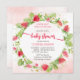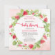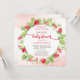 Modelo do convite para chá de fraldas de morango doce de berço, morango de aquarela, fundo de rosa claro.