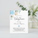 Para um Chá de fraldas, comemorando um menino. Um fundo branco chic. Decorados com rosas, flores, florais e verde de eucalipto, folhas, ouro, de cor azul clara, Personalize e adicione um nome e detalhes da parte. O texto: Chá de fraldas e o nome da mãe a ser é escrito com um moderno estilo escrito à mão. Verso: cor azul clara do fundo.