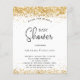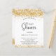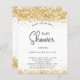 Um fundo branco na moda. Decorado com pó sujo de ouro. Personalize e adicione um nome e detalhes da parte. O nome é escrito com um script de estilo manuscrito