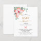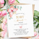 Um fundo branco chic. Decorados com ouro rosa e borboleta cor-de-rosa esbranquiçada, folhas verdes de eucalipto de cor aquosa, galhos, verde-verde e um cinturão de ouro falso. Personalize e adicione o nome da mãe a ser e os detalhes da festa. Letras pretas e ouros coloridas. 1 folha = 1 convite impresso de borda a borda.