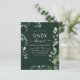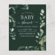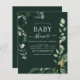 Budget Emerald - Sage Green Greenery Botanical Watercolor Primavera Baby Shower Invtions em fundo preto, verde e branco - inclui uma bela e elegante tipografia com folhas botânicas modernas e verde para a celebração da Mãe a Ser especial.