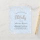Para um chá de fraldas, comemorando um menino. Um fundo azul claro, azul bebê. Decorado com pó falso de cinza prateada. Personalize e adicione o nome da mãe e os detalhes da festa. Oh Baby é escrito com um falso estilo de escrita/fonte do balão prateado.