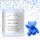 Para um convite elegante e chá de fraldas, celebrando um menino. Um fundo metálico falso prateado. Decorado com brilho azul claro. Personalize e adicione um nome e detalhes. Script de estilo com letra moderna