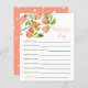 O chá de fraldas do tema pêssego bonito deseja um cartão de bebê com ilustração aquosa da fruta de verão em um galho de árvore. Os textos são editáveis. Atividade perfeita para jogar durante o chá e definitivamente será um excelente!