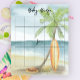 Bebê no Conselho! Chá de fraldas - perfeito para um chá de fraldas de verão. Tema da praia. A design de aquarela tem uma cena oceânica e de praia com surfboard, palmeira e chapéu de verão.