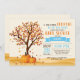 Cartaz de convite para Chás de fraldas de queda com árvores em queda e folhas de fundo. Para mais personalização, clique no botão "Personalizar" e use nossa ferramenta de design para modificar este modelo.