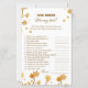 Faça seus convidados rindo com essa diversão e engajando o jogo "Quem conhece melhor a Mamãe?". Este cartão maravilhosamente projetado, com folhas de outono rústicas, desafia os hóspedes a responder perguntas sobre a futura mãe para ver quem sabe melhor dela. É uma atividade encantadora e pessoal que adiciona um toque memorável à celebração do seu chá de fraldas.