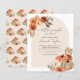 Este pequeno abóbora cai no chá de fraldas floral é perfeito para um chá de fraldas elegante. O design apresenta belas abóboras aquáticas em branco, terracota e sábio com flores boho em terracota e marfim com verde. Uma letra elegante é o toque perfeito para terminar. Personalize com todos os detalhes do seu chá de fraldas.