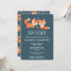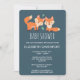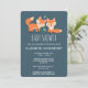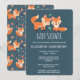 Convite para chá de fraldas com uma ilustração gráfica de 2 raposas de laranja bonitinhas e felizes. Fundo verde escuro.