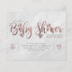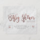 Convite de chá de fraldas elegante com um script de rosa dourado de falso chic contra o mármore branco mostrando seus detalhes com a tipografia na moda minimalista. Como parte da seleção do orçamento aqui no Zazzle, esses convites vêm em tamanhos limitados e estoques de papel. Se você precisar de um tamanho ou estoque de papel diferente, esse design pode ser transferido para um formato padrão 5x7 usando a ferramenta de transferência design para obter mais opções.
