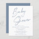 Chá de fraldas de Script Manuscrito Azul com Empoe