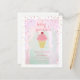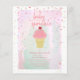 Um tema de sprinkle de chá de fraldas com ilustração de borda de confetti e sprinkles. Ilustração de um cone de sorvete de morango revestido com cereja e aspersão no centro. A aquarela inspirou fundo. Personalize o texto.