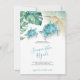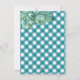 Você está planejando um chá de fraldas e se perguntando onde comprar convites? Este simples convite para chás de fraldas de menino apresenta o nome da mãe para ser definido em uma tipografia moderna de script manuscrito com detalhes de evento em uma fonte de serifa clássica. Uma barqueira da minha tartaruga marinha original e folhas de palmeira monstera em tons de blues, verdes e turquesa adornam este convite tropical. O cartão se reverte para um padrão de gingham azul-turquesa complementar. Uma opção botânica, mas elegante, para os lúaus casuais de verão, praia tropical e chás de fraldas de temas costeiros. Para ver mais convites para o chá de bebê do oceano e toda a suíte de papelaria visite www.zazzle.com/dotellabelle