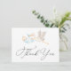 Cartões de agradecimentos com uma ilustração adorável de aquarela de um carregando de cegos em um cobertor azul. Personalize com suas informações ou clique em "Clique para personalizar mais" para editar estilos de fonte, tamanho e cores. Também pode ser personalizado no verso com sua própria mensagem digitada ou excluir este espaço para escrever manualmente seu próprio obrigado.