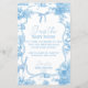 Chá de fraldas de Toile de Jouy, azul e branco, adivinha o jogo da Comida do bebê