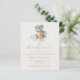 Este chá de fraldas bonito apresenta um doce ursinho de peluche aquoso em um equipamento de aviador azul, sentado em uma nuvem, acima das palavras "podemos esperar" em escrita azul. Personalize o texto com o nome da futura mãe no script azul e os detalhes na fonte sans serif em um fundo bege.