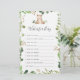 Os desejos de chá de fraldas para o tema "Bear" para cartões de jogos para bebês apresentam uma ilustração de ursos de aquarela e verde-aquarela eucalipto garland e uma elegante fonte de estilo manuscrito.
