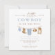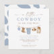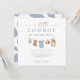 A coleção de chás de fraldas Clint Little Cowboy apresenta adoráveis roupas de rodeio de bebê com aquarela penduradas em uma linha emparelhada com uma fonte divertida e cor azul empoeirada. Esta coleção é perfeita para o seu rancho ou evento de bebê temático do rodeio.
