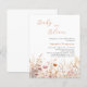 Um bebê elegante no convite de Chá de fraldas Bloom. Um fundo branco Decorado com flores silvestres de cor d'água em bege, rosa. 1 folha = 1 convite impresso de borda a borda.