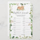O cartão de jogo de palavras de chá de fraldas com tema cercado apresenta uma ilustração de veados com aquarela e verde-aquarela eucalyptus garland e uma elegante fonte de estilo manuscrito.