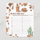 Encoste-se! Este design de aquarela. Este design apresenta cores neutras modernas em uma aplicação de aquarela. Design em impressão de vaca, chapéu de cowboy, cacto do deserto, botas de cowboy. "Um pequeno vaqueiro está a caminho"
