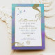 Este chá de fraldas apresenta um fundo inspirado na sereia com caudas de sereia e conchas marinhas. Use esta modelo para editar as fontes e algumas cores para atender às necessidades do seu evento. Este convite é perfeito para a sua sereia, tropicais e chá de fraldas inspirado na praia