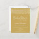 Quer você não consiga se reunir para uma festa devido a diretrizes de distanciamento social coronavírus, ou família e amigos distantes estão muito longe, este Chá de fraldas de vassoura de tendências pelo convite do Mail permitirá que os entes queridos celebrem seu novo bebê de qualquer lugar. A design apresenta um legal tecido de lama inspirado numa fronteira tribal com a tipografia moderna minimalista. Mostrado em um fundo amarelo de mostarda neutro em relação ao gênero ou use as ferramentas de design para personalizar em qualquer cor o bebê ou a menina. Adicione os detalhes do seu chá de fraldas virtual ou personalize para se adequar ao seu evento.