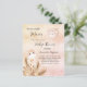 Para um chá de fraldas moderno estilo boho. Um fundo rosa dourado, rosado, rosado e roxo, com aspecto metálico. Decorado com um bebê girafa fofo, grama de pampas e uma lua sorridente feliz. Personalize e adicione um nome e detalhes da parte.