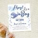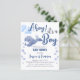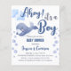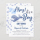 Chá de fraldas do orçamento da baleia azul Ahoy é um convite para meninos. Baleia-bebê com balões de estrelas e de células de concha e bolhas de água nos lados.