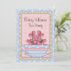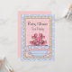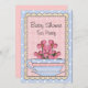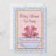 convite de festas de chá de chá de fraldas Bonito feito em azul e rosa com bolinhas, cheques e uma xícara de chá azul giro com flores cor-de-rosa. O texto na frente e no fundo cor-de-rosa sólido está pronto para personalizar para ler o que você quiser. Adorável convite para que a mamãe seja querida. Excelente para ambos os sexos.