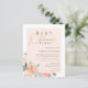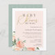 Chá de fraldas elegante por convite por correio com um script falso de folha de ouro contra uma camada cor-de-rosa pincelada com lindas peônias de cor d'água e rosas em tons de pêssego e creme. Seus detalhes são mostrados com na moda de tipografia simples. Como parte da seleção do orçamento aqui no Zazzle, estes convites não vêm com envelopes nem ajustado de forma suave em um envelope de tamanho padrão. O tamanho mais próximo é A6, mas haverá um intervalo de aproximadamente meio polegada. Se não se importa com a falta de humor, você poderia usar envelopes A6 tão disponíveis. Caso contrário, esse design pode ser transferido para um formato padrão 5x7 (que vem com envelopes) usando a ferramenta de transferência design. Como guia geral, a partir do momento do escrevendo, 100 convites orçamentários (incluindo um desconto por volume) custariam cerca de US$ 39, enquanto 100 convites padrão 5x7, incluindo envelopes, custariam aproximadamente US$ 135. Sua quilometragem pode variar dependendo dos códigos de promocionais disponíveis do Zazzle, das vendas em todo o site ou das mudanças nos preços.