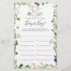 Adivinhamento do chá de fraldas de temas elefantes que está no cartão de jogo de fralda apresenta uma ilustração elefante de cor d'água e verde-aquarela eucalipto garland e uma elegante fonte de estilo manuscrito.