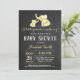 Chá de fraldas Elefante Convite Amarelo e Placa de Cinza com Fundo de Quadro Preto e Branco. Menina ou Chá de fraldas de Menino Convidam. Para mais personalização, clique no botão "Personalizar" e use nossa ferramenta de design para modificar este modelo.