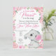 Chá de fraldas de Elefante/Amendoim muito fofo com rosas cor-de-água rosa, flores, Todos os campos são editáveis. Adequado para aniversário ou Chás de fraldas, chá de Fralda, gole e veja.