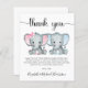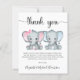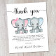 Um doce bebê gêmeo e cartões de agradecimentos de chá, amigável em orçamento, apresentando "obrigado você" em um roteiro na moda com baloiços e aquarelas de elefante de menina rosa e um elefante de bebê azul. Por baixo, você pode personalizar facilmente seu obrigado, enviar uma mensagem ou deixar o vazio para uma nota manuscrita.