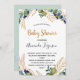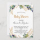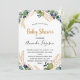 Para um Chá de fraldas. Um fundo branco chic. Decorados com eucalipto verde e ouro, folhagem. Personalize e adicione um nome e detalhes da parte. Letras pretas e ouros. O texto: Chá de fraldas e o nome da mãe a ser é escrito com um moderno estilo escrito à mão. Voltar: cor verde do fundo
